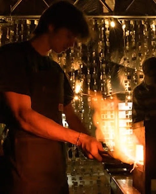 At the age of 8 years old with the help and mentorship of my grandfather Jack, I fell in love with creating things with my hands. His knowledge and creativity inspired me to continue my artistic journey for over a decade. In 2016, I took my first blacksmithing class at the Berkeley Trackers program facility. After that day, I never looked back! A few months later, I started doing work out of the shop of Herb Upham, the previous secretary of the California Blacksmith Association. It was there that I really began to develop my craft, and learned how to use more advanced forging tools and techniques such as a power hammer, welder/forge welding, industrial grinders, drills, etc. When I began handcrafting quality knives, I started selling them in local shops and on apps such as Instagram and Facebook.