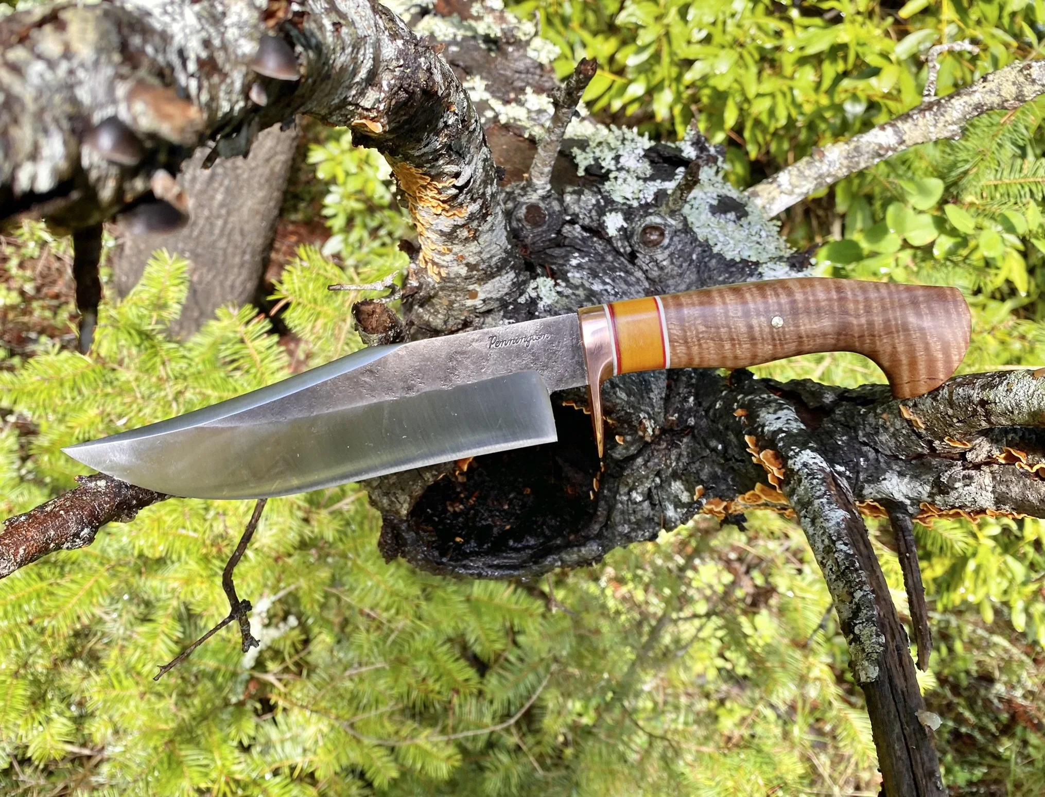 Flash forward to the present, my shop is now based out of a community workspace in Sebastopol CA, called Chimera Arts and Makerspace. It is there that I create all of my pieces as well as teaching knife making and blacksmithing classes. I also teach blacksmithing at Credo High School in Rohnert Park, where I work with the freshman students and teach them the value of working with their hands. I truly love this craft and put it all into my work, hoping the person that takes home one of my creations will feel that same love.